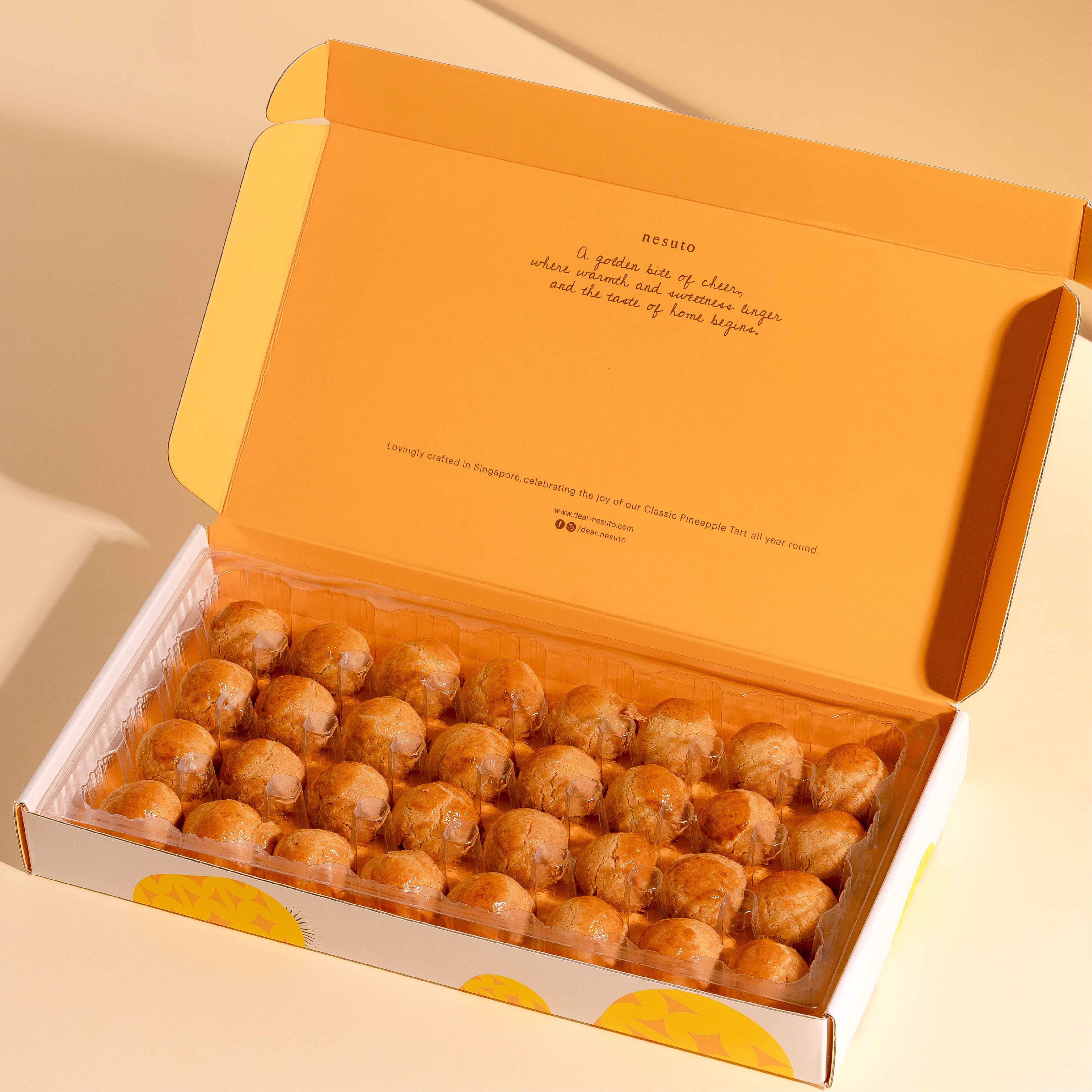 Rooted in time-honoured recipes, our Brown Butter Vanilla Pineapple Tarts pair a slow-cooked pineapple jam with a buttery, nutty crust enriched with brown butter and fragrant vanilla. Meticulously made, with a finish that unfolds softly on the palate.